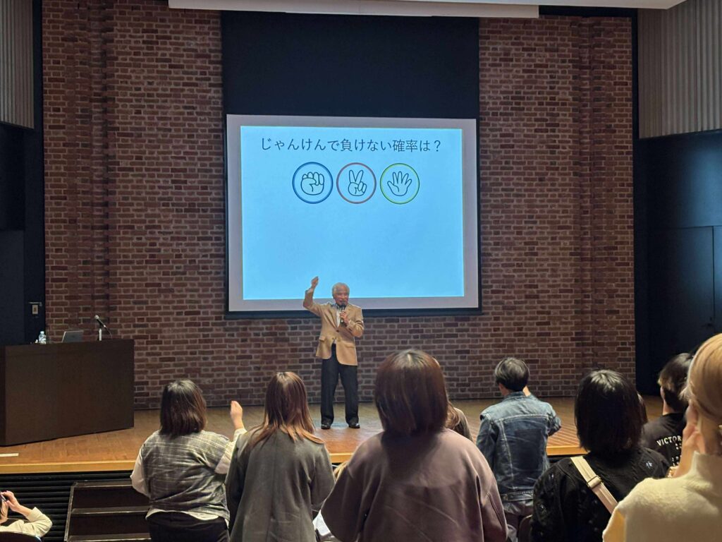 がんの基礎知識や、最新の統計データをもとに、現状や予防法なども含め、がん共生社会を創るに欠かせない「正しい情報」をお伝えいただきました。 お話の中にじゃんけん大会を盛り込んでいただき、じゃんけんの確率とがんに罹患する確率を置き換えて考えることで、数値の捉え方が変わり、とても分かりやすく説明をいただきました。