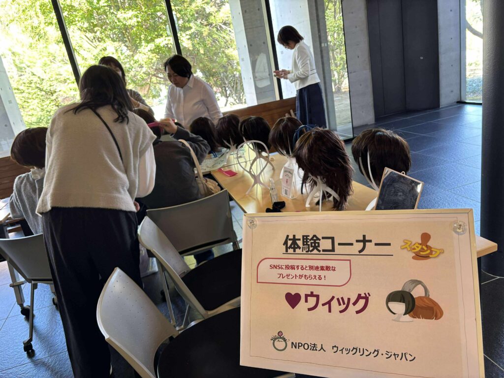 医療用ウィッグの試着やリンパ浮腫ケア用品の展示、口腔ケア商品の配布のほか、